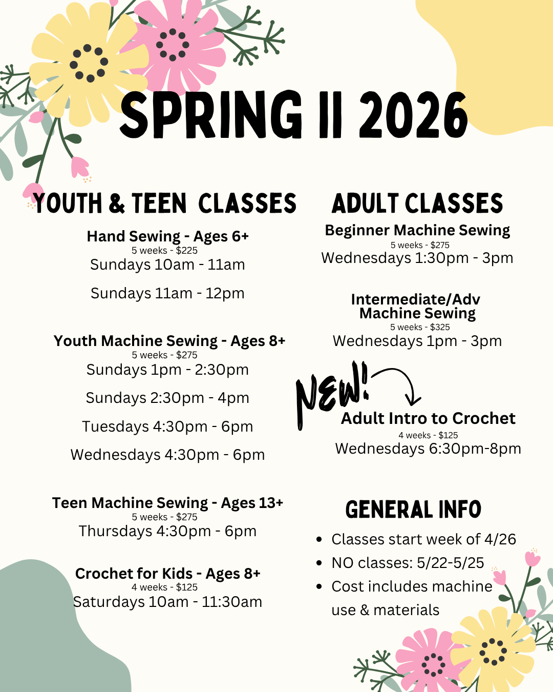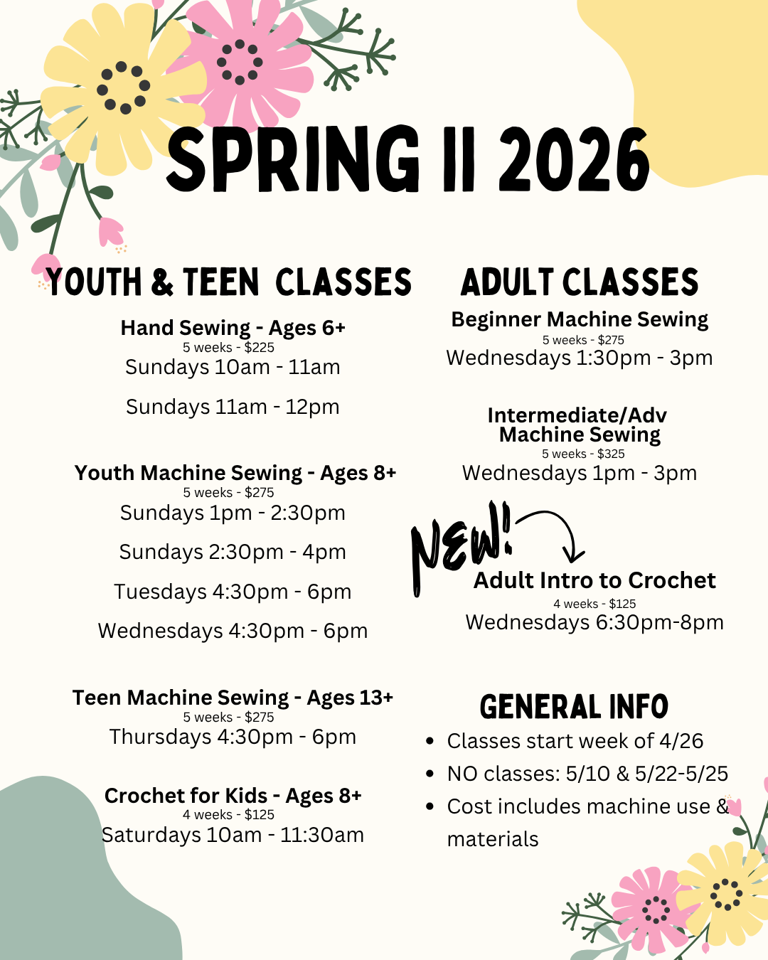 Spring II Registration Opens Saturday 4/4 at 10am