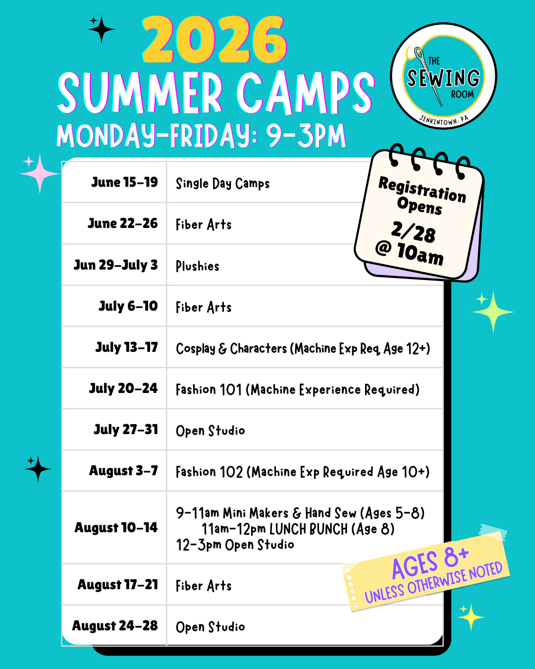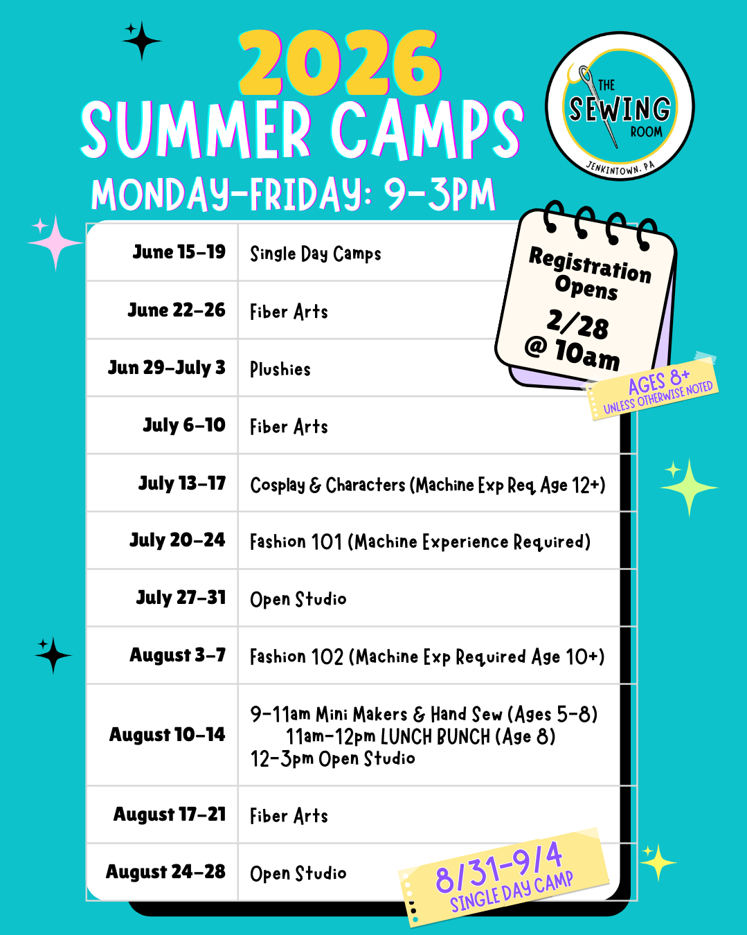 Spring Break Camp 9am - 3pm Ages 8+
